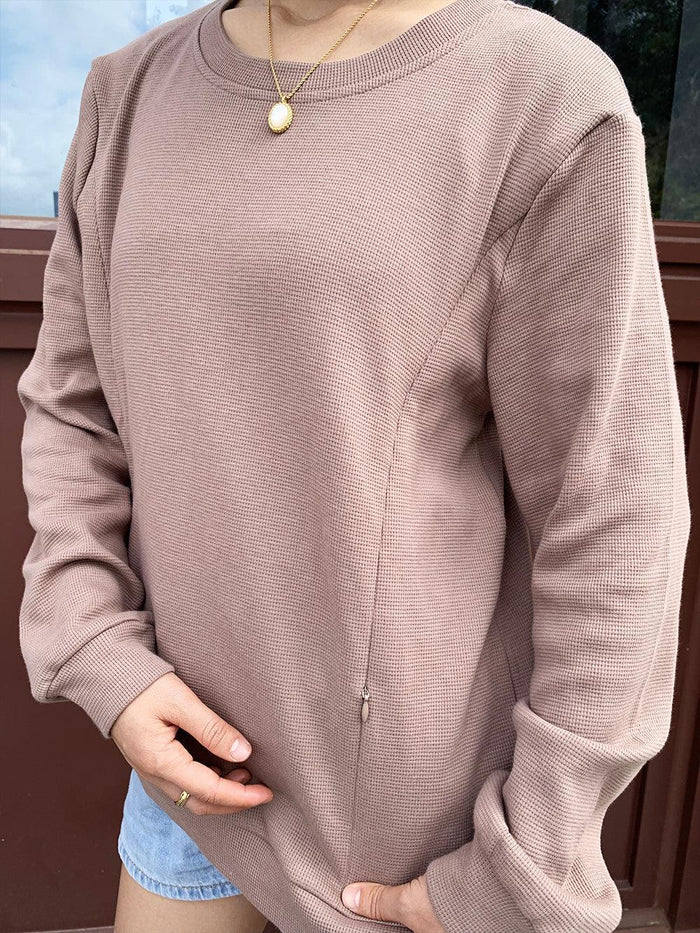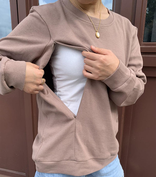 Breastfeeding Waffle Knit Solid Zip Sweatshirt