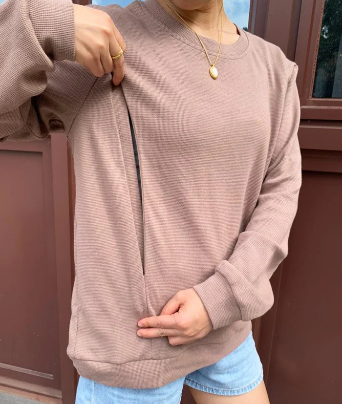 This stylish sweatshirt is the perfect addition to any breastfeeding wardrobe. It has hidden zips on each side to allow for easy access for nursing