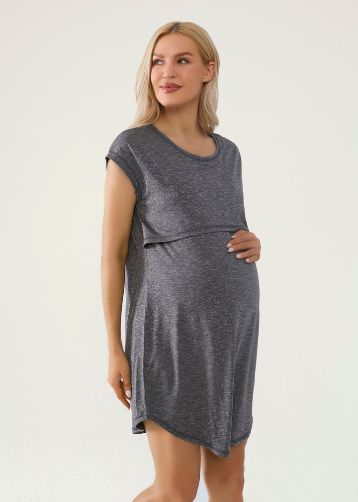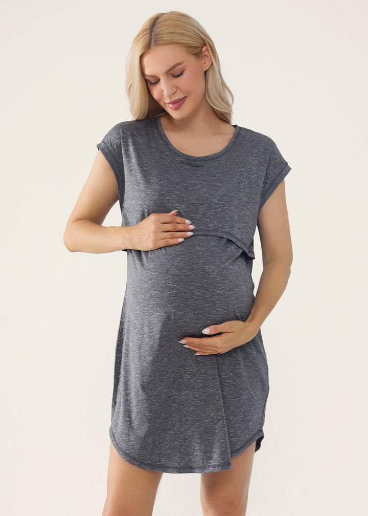 Looking for a comfy sleepwear? Our Lounge Nursing Dress is the perfect choice. Made from a luxuriously soft material, this dress is easy to wear to bed or for lounging with its semi-fitted silhouette and lift-up nursing panel. The short sleeves add to the shirt’s breezy feel. So comfy and lightweight, wear this piece all the way into summer and look super cute while doing it.