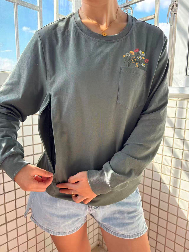 Floral Pocket Long-Sleeve Breastfeeding T-Shirt