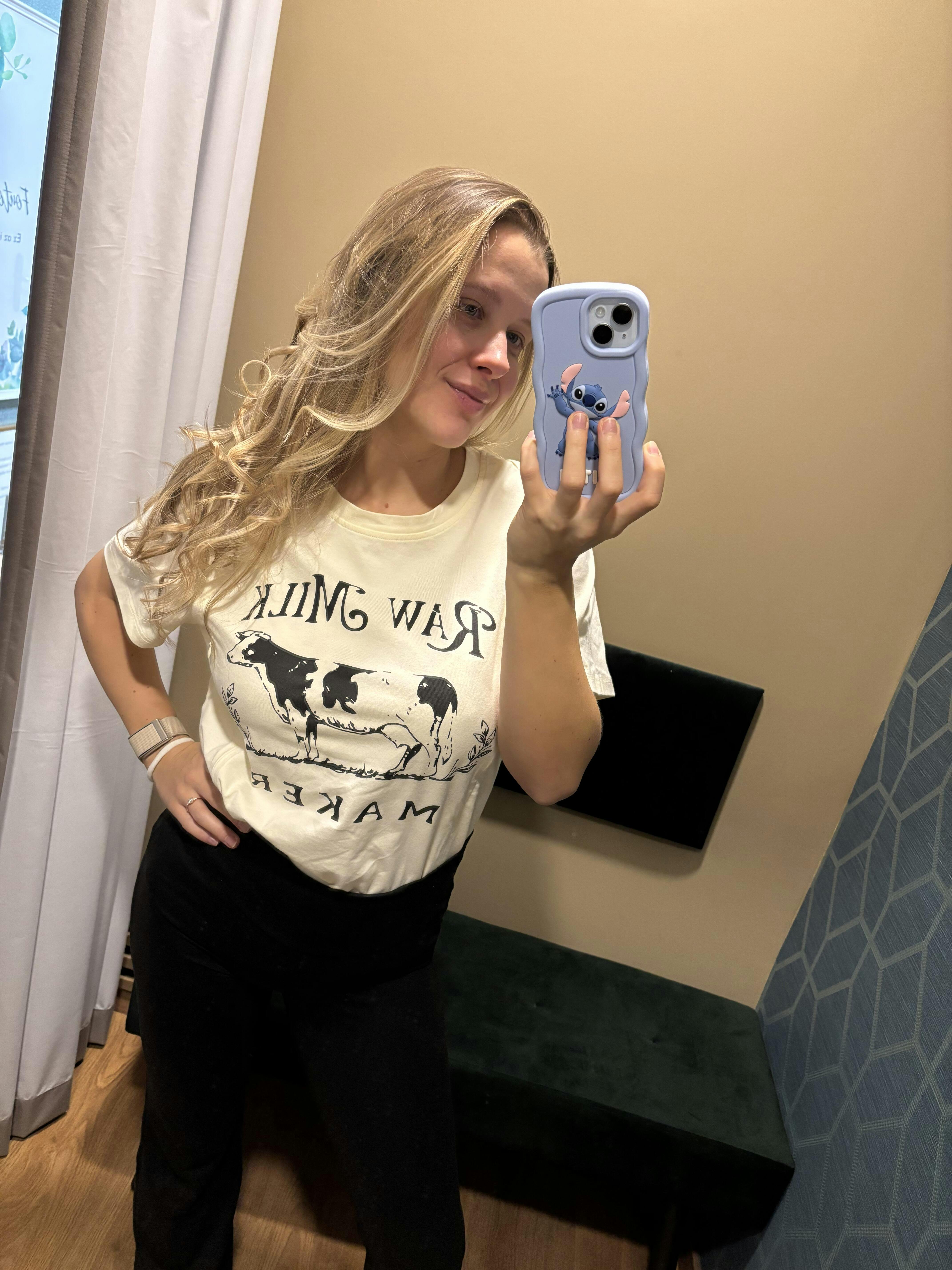 Note: The tee is a regular fit, and we recommend you to choose one to two size up when pregnant. If you prefer a relaxed fit, size up. If you're between sizes, please size up.