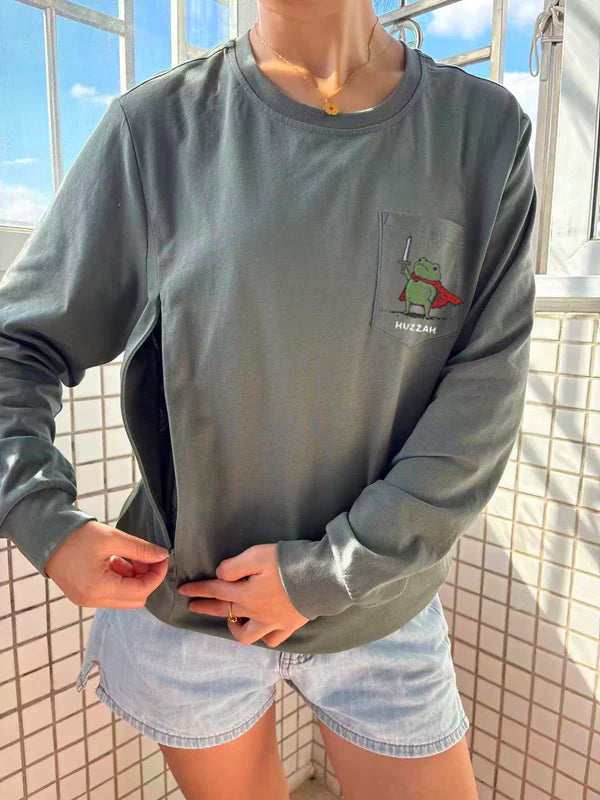 This stylish tee is the perfect addition to any breastfeeding wardrobe. It has hidden zippers on each side to allow for easy access to nursing.
