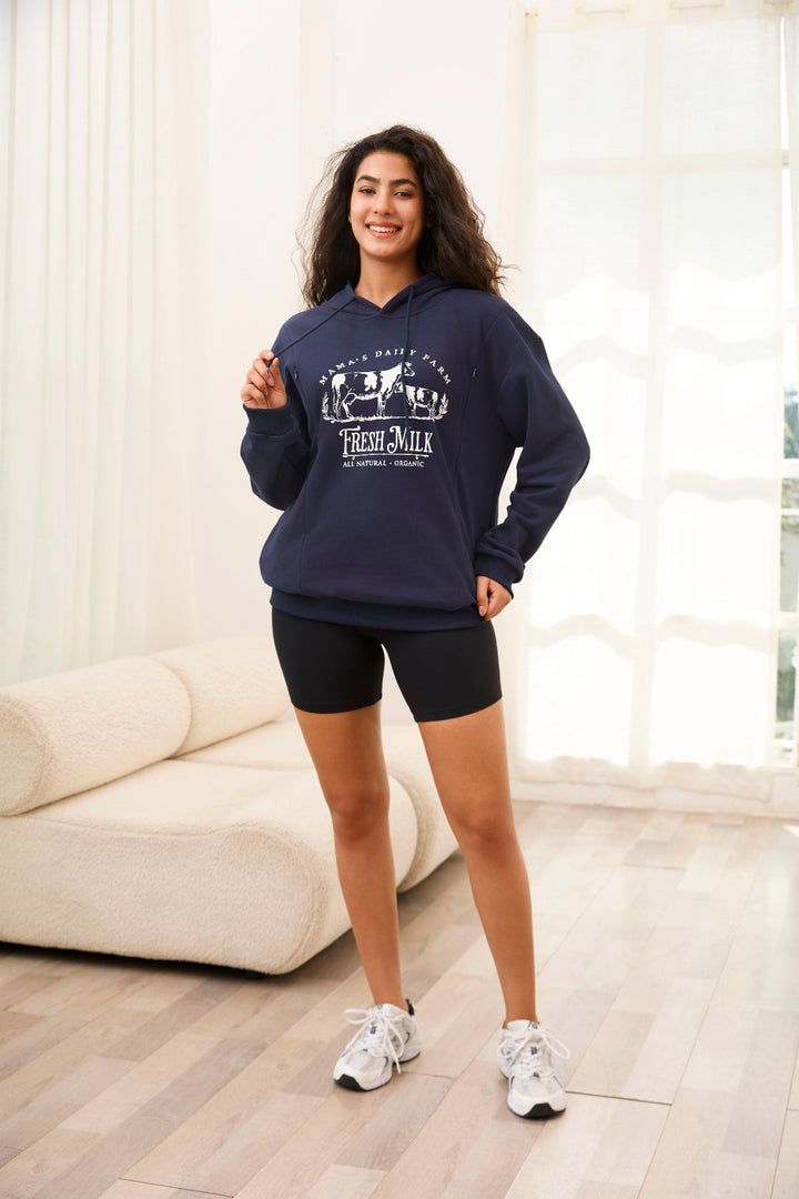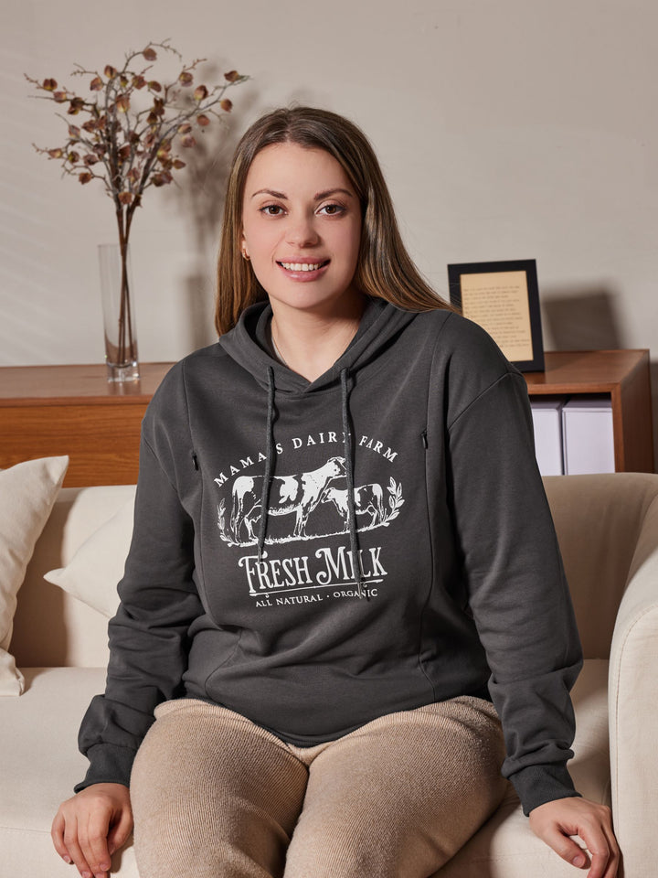 Mama’s Dairy Farm Fleece Nursing Hoodie with Hidden Zippers