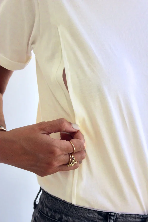 This tee is easily accessible for discreet and comfortable pumping and nursing. You'll love the relaxed fit and easy access for feeding your little one.