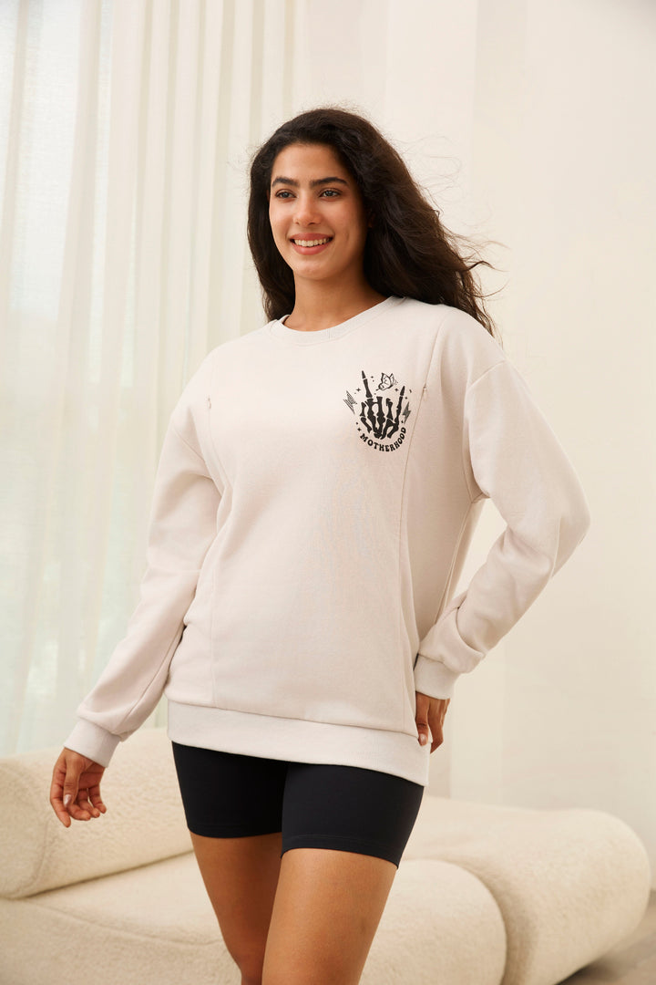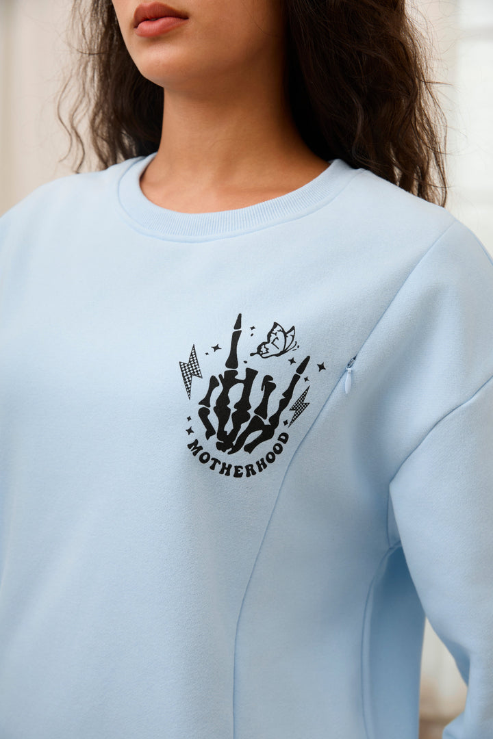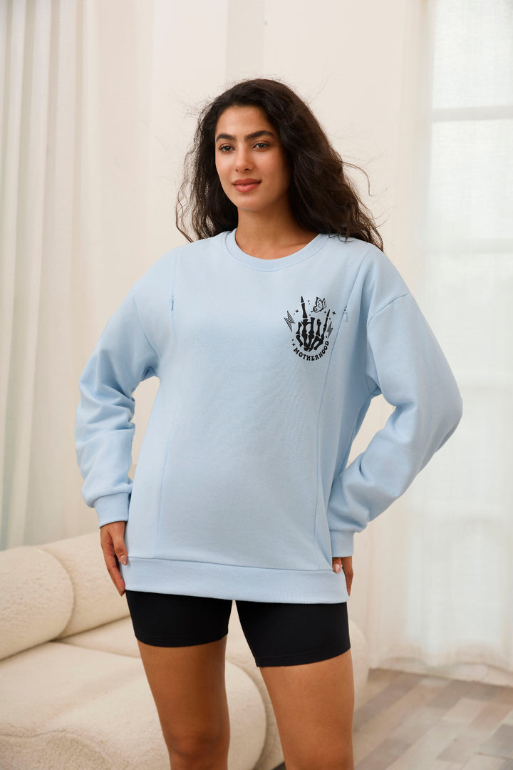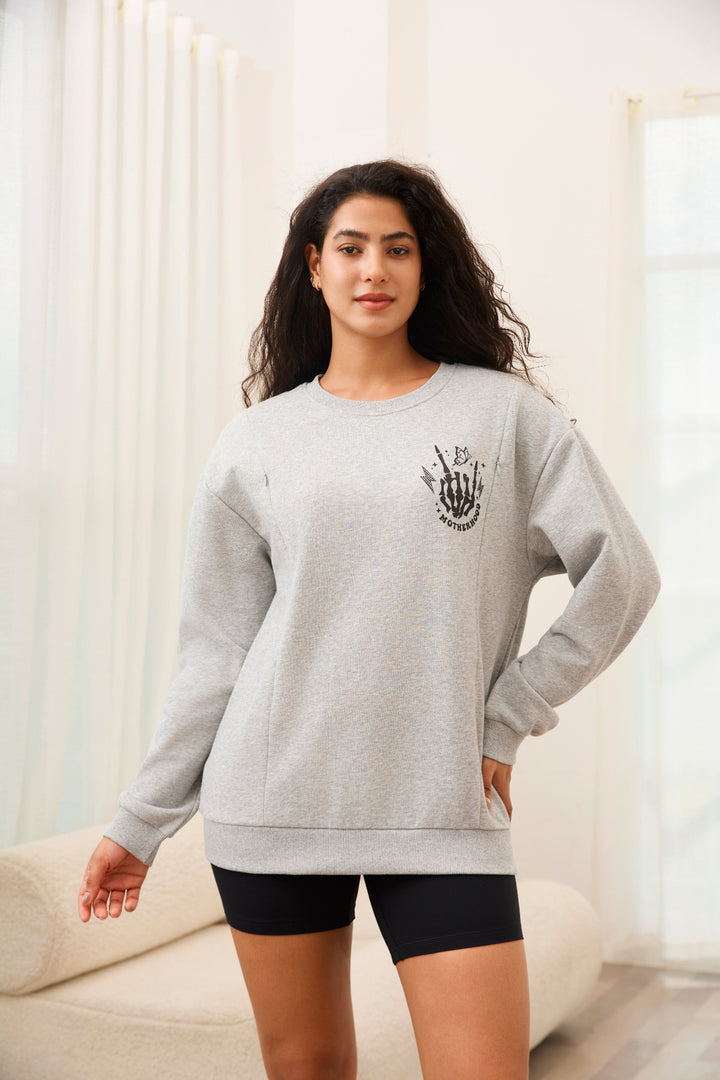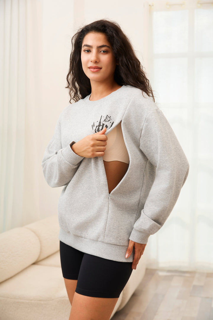 This stylish sweatshirt is the perfect addition to any breastfeeding wardrobe. It has hidden zips on each side to allow for easy access to nursing Product Description:
