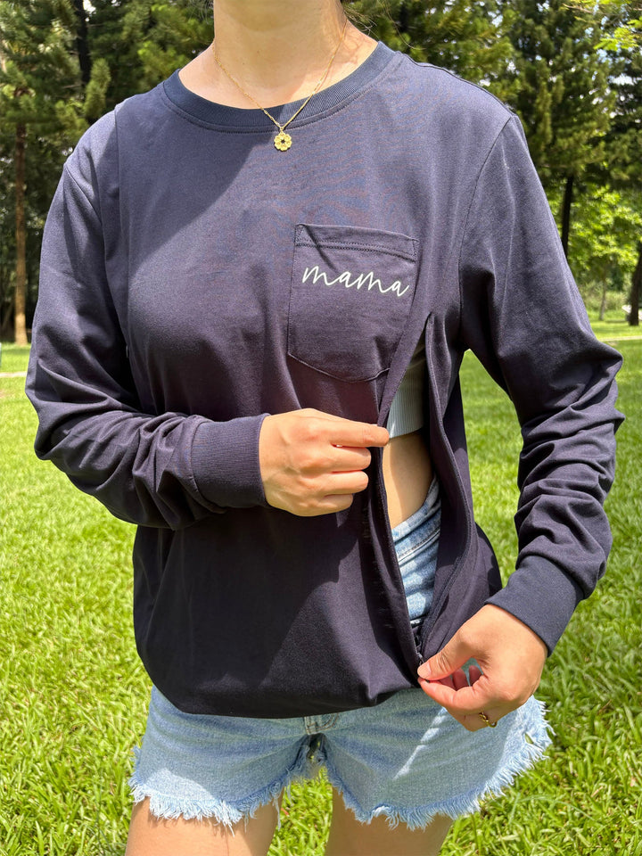 This stylish tee is the perfect addition to any breastfeeding wardrobe. It has hidden zippers on each side to allow for easy access to nursing.